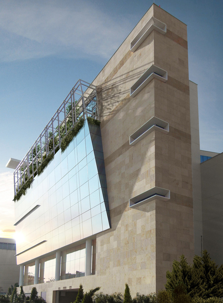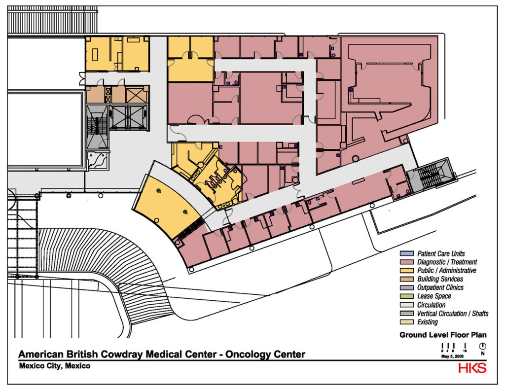 The main hospital sits across the street, so the approach was to find connectivity with it, take advantage of views of the city skyline toward the south and prevent undesired views of adjacent rooftops, while at the same time providing with much needed natural light into every space available